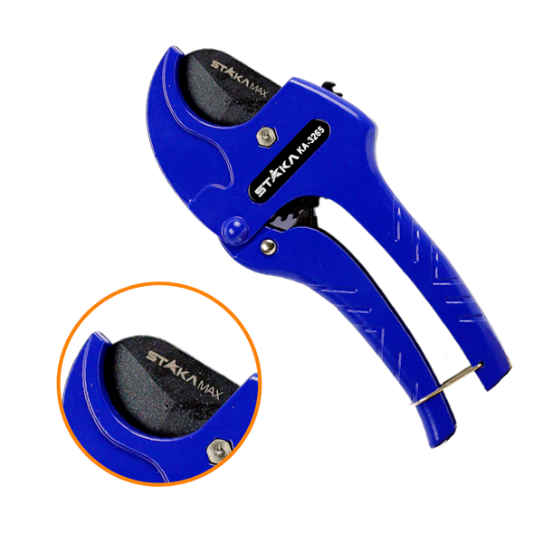 • Phía đầu tay cầm có bộ phận để giữ cho kéo khép lại khi không sử dụng.Kéo cắt ống nhựa PVC Staka chuyên dùng để cắt các loại ống nhựa, ống nước,… Đây là dụng cụ được tin dùng bởi những người thợ lành nghề trong ngành sửa chữa và lắp đặt mạng điện, ống nước.