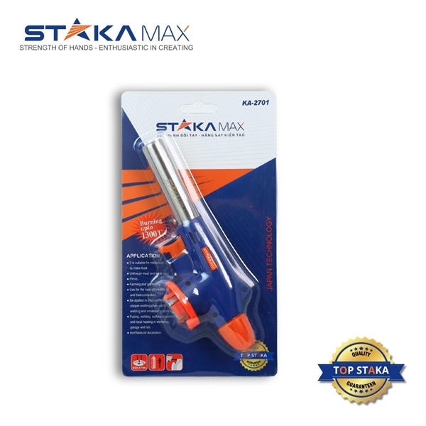 – Đèn khò gas, súng khò ga STAKA có hai chế độ điều chỉnh, phần núm sau điều chỉnh lượng gas tiêu thụ, phần núm xoay phía trước điều chịnh độ rộng và dài của vòi lửa.