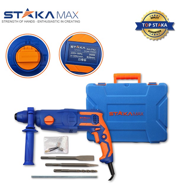 Với một máy khoan bê tông 3 chức năng vừa mạnh mẽ, vừa đa năng vừa tiết kiệm thời gian và nâng cao hiệu quả công việc luôn là điều khiến tất cả anh thợ mong muốn, nhất là thợ chuyên nghiệp. Với Động cơ lõi đồng, lực đập mạnh 2.2J, 3 chế độ khoan – đục – khoan đục, máy khoan bê tông 3 chức năng 2-26 STAKA dễ dàng “chinh phục|” nhiều bề mặt vật liệu khác nhau như bê tông, gạch, tường hay kim loại. Đặc biệt STAKA- THƯƠNG HIỆU VIỆT bảo hành 6 tháng, chính hãng, giá tốt giải quyết tất cả vấn đề trên của bạn.