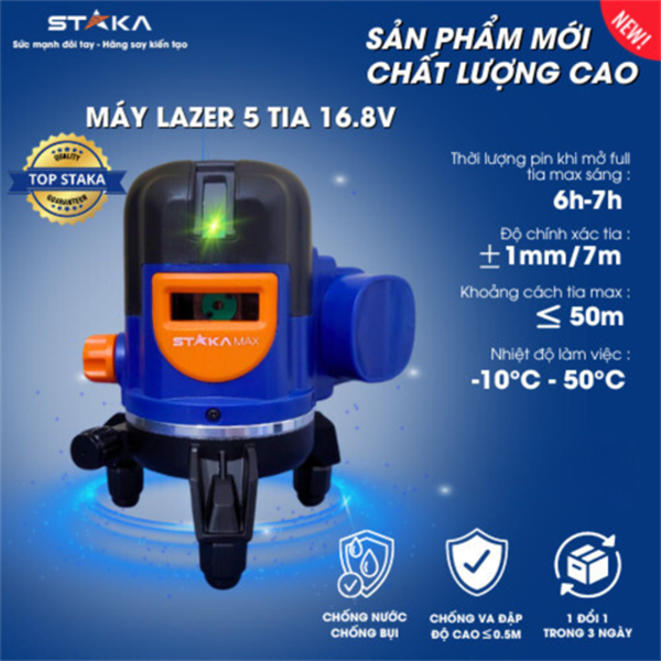 Máy laser 5 tia hộp đứng STAKA MAX là dòng máy cân mực chuyên nghiệp được thiết kế dành cho kỹ sư xây dựng, thợ thi công, thợ điện nước và những ai cần đo đạc chính xác trong không gian. Với thiết kế hộp đứng chắc chắn, công nghệ laser xanh sắc nét giúp người dùng làm việc nhanh chóng, chuẩn xác và tiết kiệm thời gian.