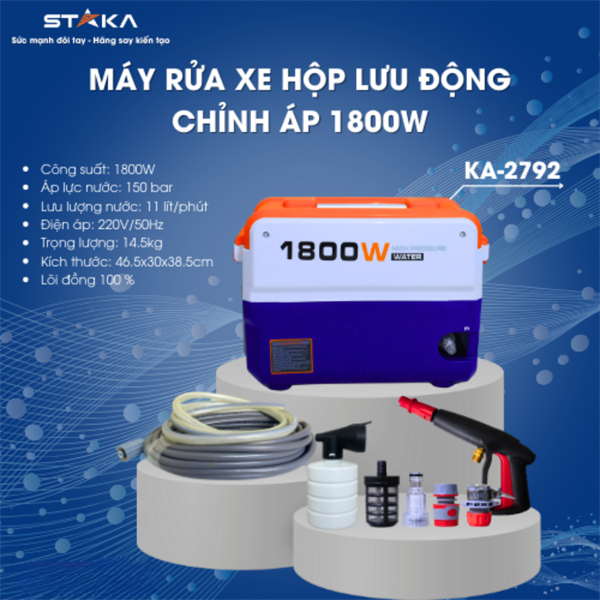 Máy Rửa Xe 1400W STAKA là lựa chọn tối ưu cho gia đình, cửa hàng nhỏ và những ai cần một thiết bị rửa xe gọn nhẹ, bền bỉ nhưng vẫn đảm bảo áp lực mạnh mẽ. Với thiết kế thông minh, động cơ lõi đồng 100% và khả năng làm sạch nhanh chóng, sản phẩm mang lại trải nghiệm rửa xe tiện lợi và tiết kiệm chi phí.