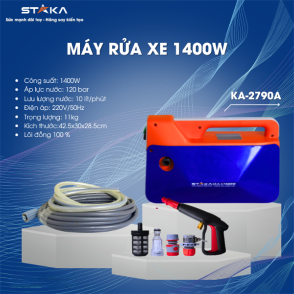 Máy Rửa Xe 1400W STAKA – Sức Mạnh Gọn Nhẹ, Hiệu Quả Vượt Trội