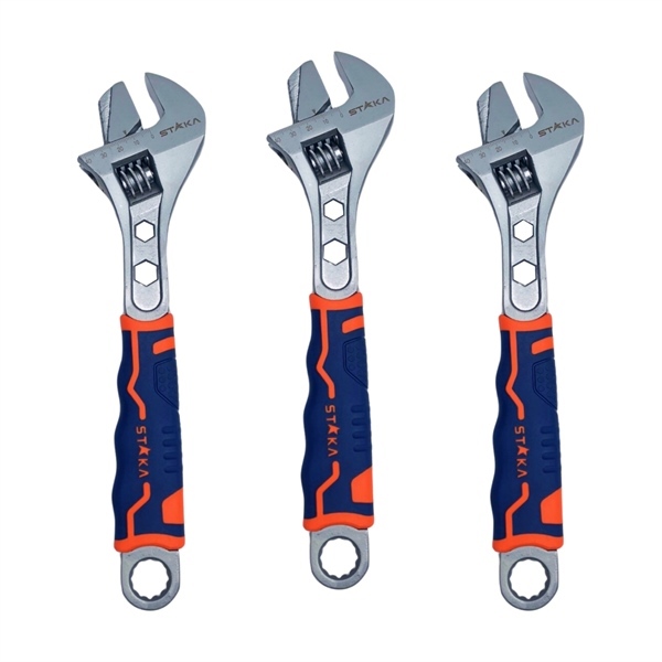 Đầu mỏ lết cứng cáp, điều chỉnh dễ dàng bằng núm vặn trục trơn tru, có khắc thước đo rõ nét, tiện lợi khi thao tác.